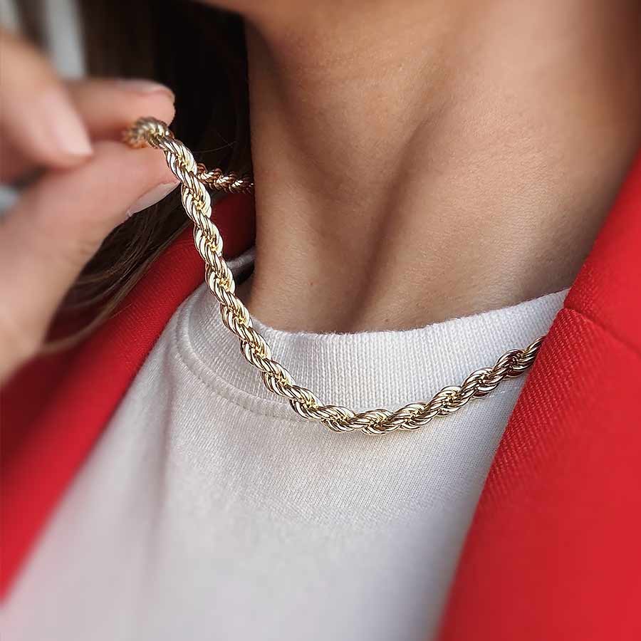 La Cadena Lazo 5mm tiene ese twist trenzado que atrapa miradas y le da vida a cualquier outfit. Perfecta para llevar sola o para armar una combinación poderosa de collares.